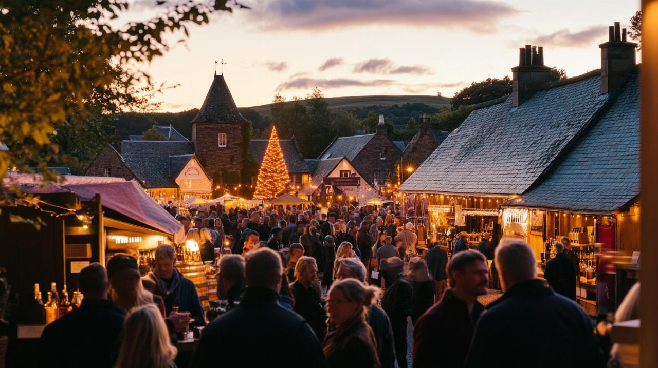 Durant le festival, de nombreuses distilleries ouvrent leurs portes pour révéler leurs secrets de fabrication. C'est le moment idéal pour filmer le processus de maltage, où l'orge est transformée en malt, une étape fondamentale dans la création du whisky. Les cuves de fermentation bouillonnantes offrent un spectacle fascinant, avec leurs remous et leurs arômes enivrants qui se dégagent. Les alambics en cuivre, véritables bijoux de l'ingénierie traditionnelle, méritent une attention particulière. Leur forme caractéristique et leur brillance créent des images saisissantes qui illustrent parfaitement le savoir-faire artisanal préservé depuis des générations.